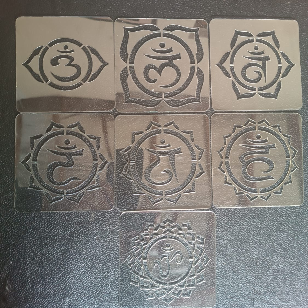 Jogo com 7 peças em stencil Petg 0,5mm - símbolos dos CHAKRAS.